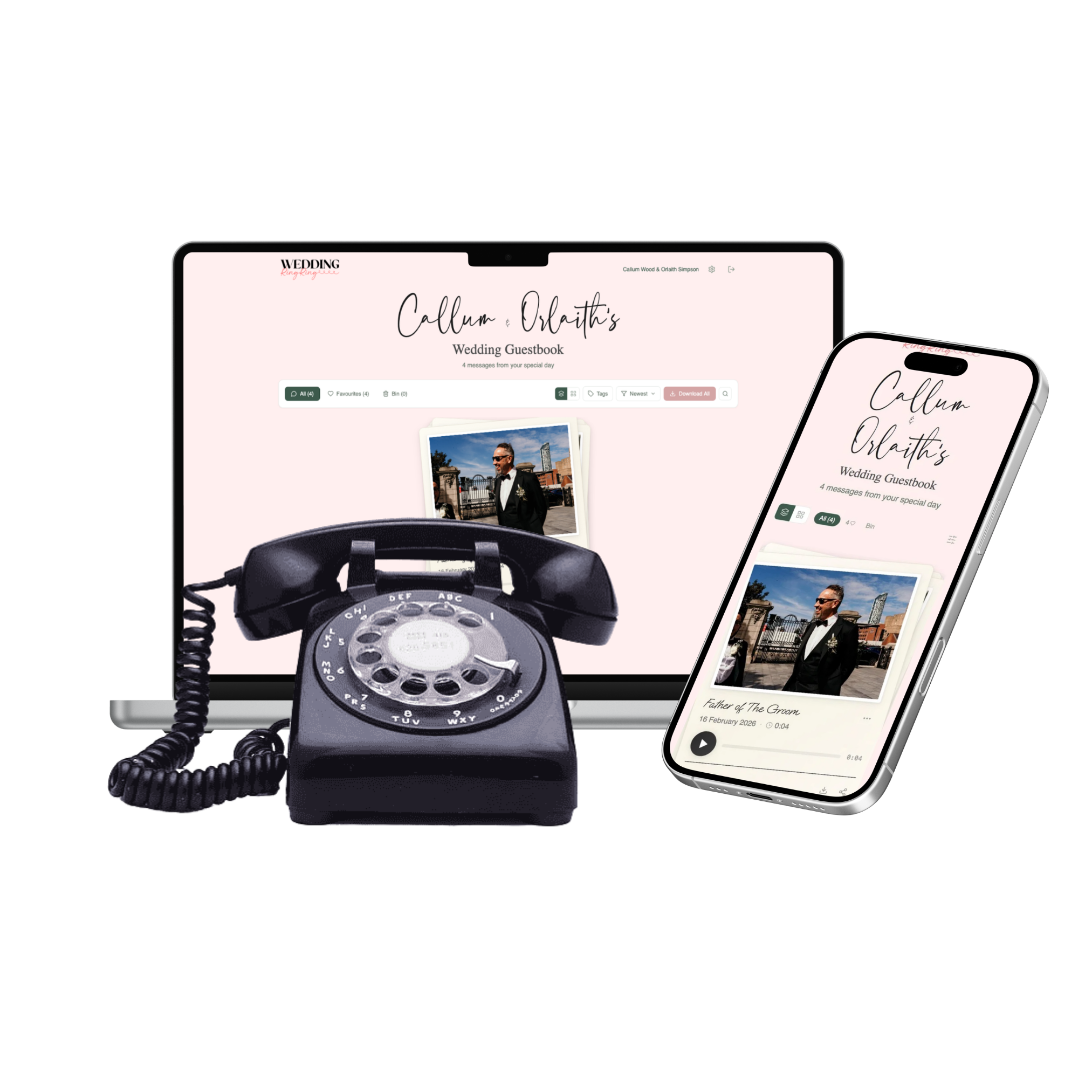 WeddingRingRing allows your venue to offer a beautifully designed vintage-style audio guestbook — without adding complexity to your team's day.